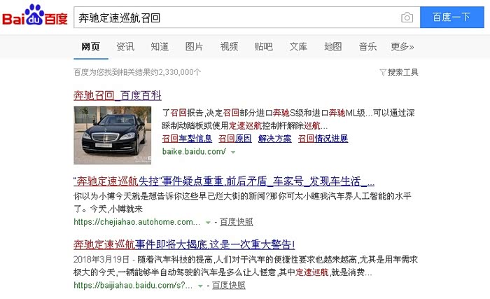 奔驰定速巡航召回网上都能查出来