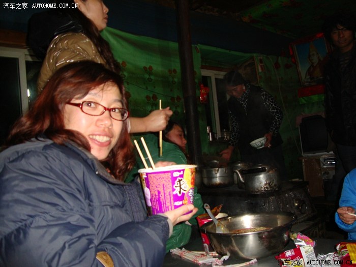 晚上,大家围着火炉在藏民家吃泡面~~来一桶,好香啊~~无比美味
