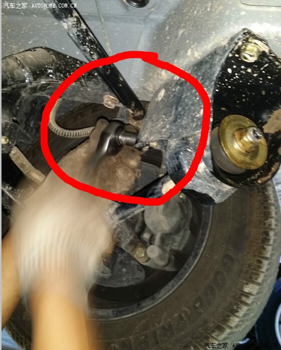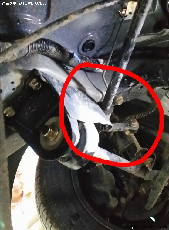 另外,新车才买来的时候,就出现一个情况,走在凸凹不平的路上,车身一晃动就会出现嘎吱嘎吱的声音。首保的时候服务站的修理工帮我在照片红圈位置加了点油,当时没有发出声音了,结果没有几天又继续发出嘎吱嘎吱的声音,尼玛真像开着牛车,郑州海马的服务就不能做的再好一点吗