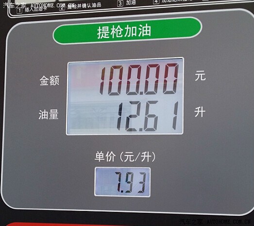 跑到359公里,又加了100元的油,12.61升,油价保持7.93一升