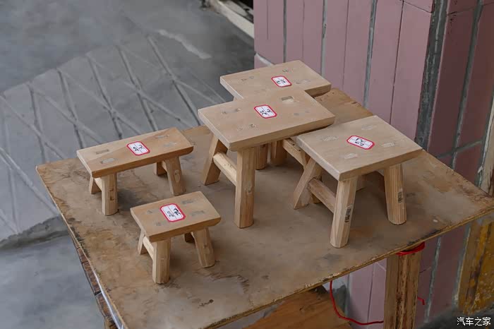 这些板凳看着怪怪的,说它古朴吧,机具加工的硬线条非常醒目。说它现代吧,现在也没什么人用这种凳子了。既没有实用性,好像艺术性也不强,一股浓浓的土气。