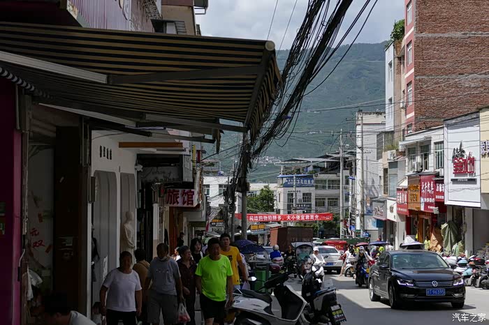 在购物区远眺九襄城区。想来古代的商旅,历经千辛万苦,翻越泥巴山或者拖乌山之后,来到这里,也会开启买买买,卖卖卖模式吧。