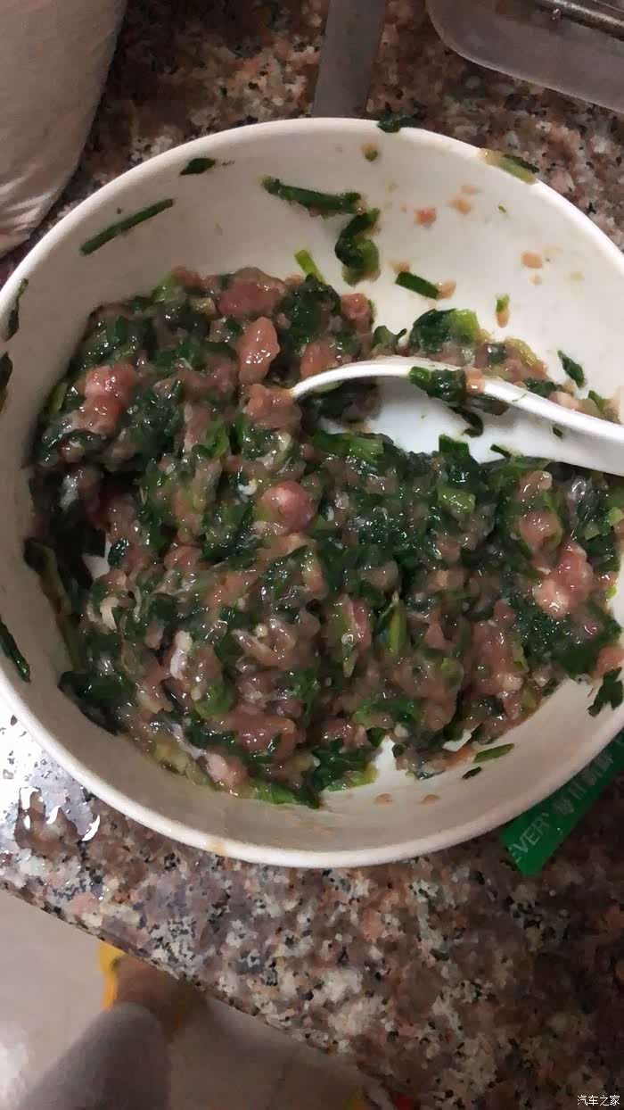 包馄饨的馅儿,韭菜肉馅的