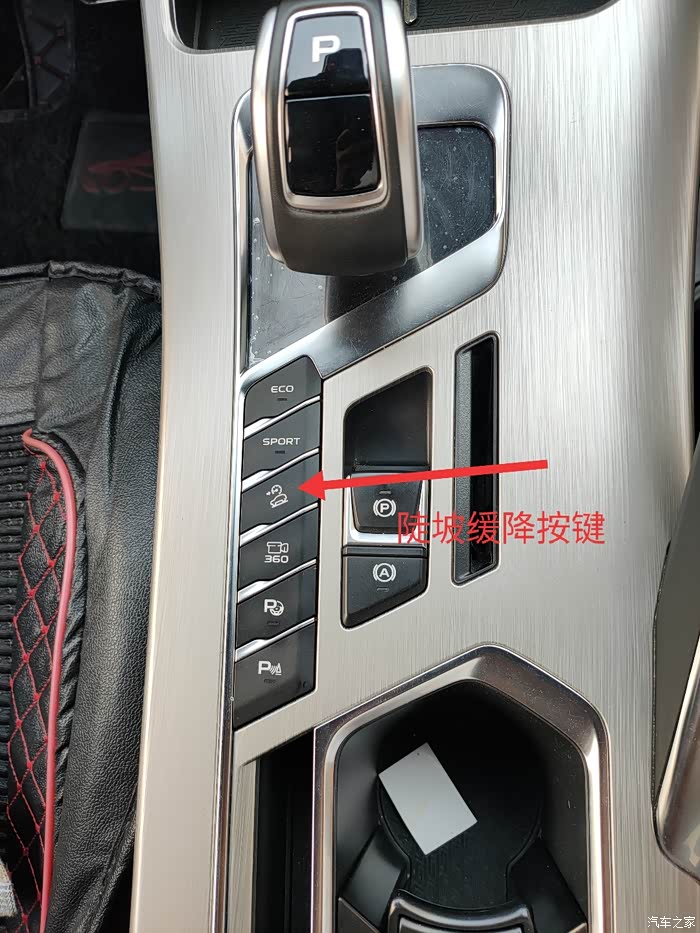 陡坡缓降的开启条件,车速小于35km/h,手动按一下陡坡缓降功能键,相应的按键上显示灯呈绿灯色,再看看仪表盘上会出现陡坡缓降的图标,表示陡坡缓降已经开启了。这时候我们就可以慢慢松开刹车,让车子按照陡坡缓降设定的车速行驶。