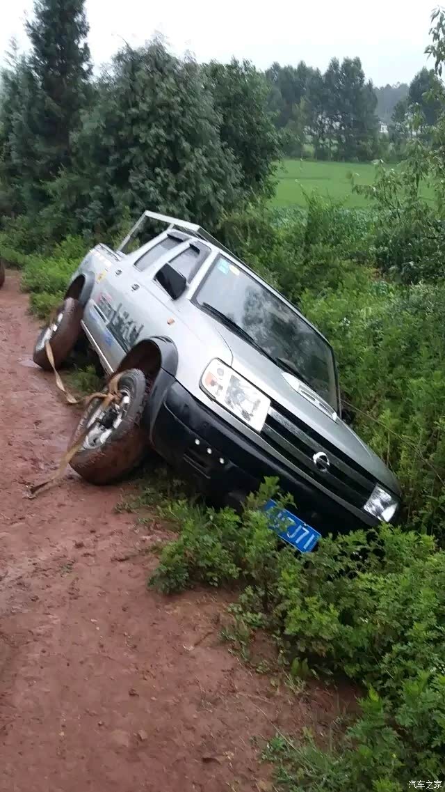 自以为有了四驱就不怕走不了的路,结果掉沟了,前脸
