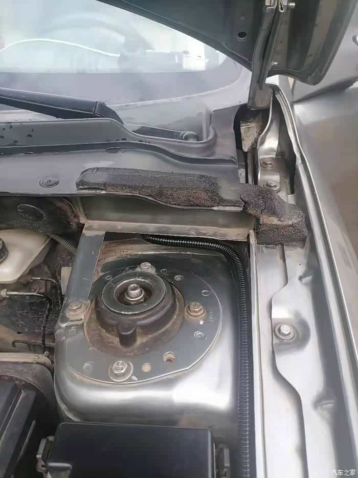 面向车尾,右手减震柱走线。拆掉雨刷器,拿下盖板,里外留有三个线孔,从直线的两个孔穿线到驾驶台。固定。