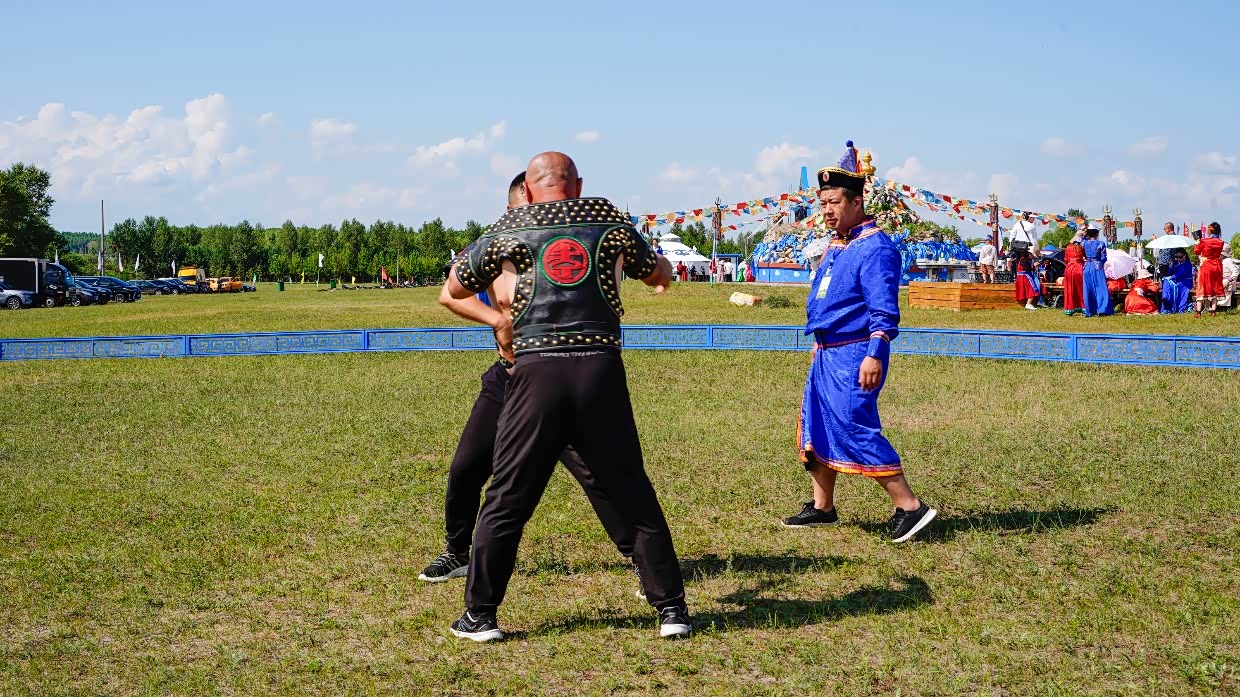除了精彩的赛马表演,我还现场观看了蒙古摔跤比赛。这项充满力量与技巧的传统体育项目,展现了蒙古族独特的文化和精神风貌。摔跤手们的勇猛和坚韧令人钦佩,他们不仅在比赛中展现出了惊人的爆发力,更让我感受到一种原始的力量之美。