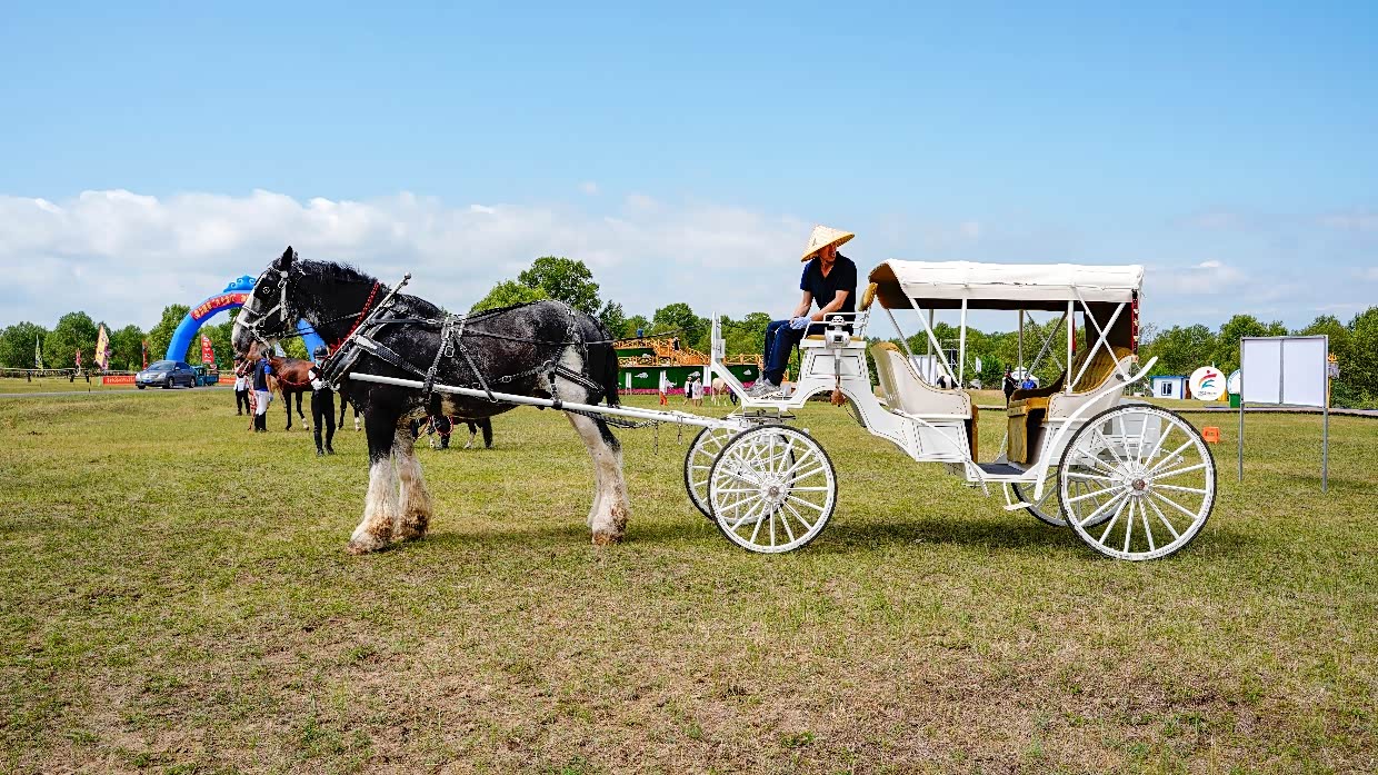 接着是弗里斯兰马,这种来自欧洲的高大马匹以其深黑的毛色和高贵的姿态吸引了我的目光。它们体型庞大,却显得异常优雅,步态稳健而从容,仿佛草原上的绅士一般。