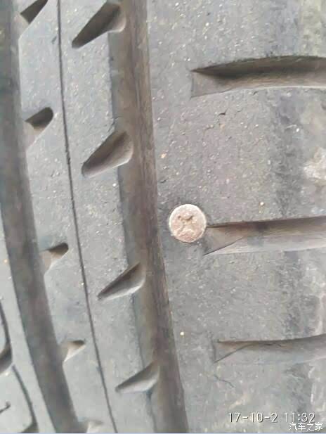 17年国庆打算回老家,高速500公里,于是提前2天,就是17年9月29日,去4s做了保养。这时候才发现,右后轮居然扎了一个钉子,我都不知道。