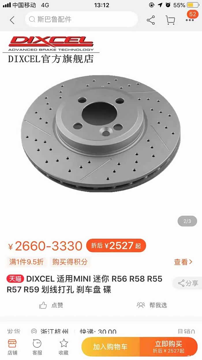DIXCEL官方旗舰店,起初准备买这套,但是用过车架号查询以后发现不匹配,只适用于R56 Cooper S