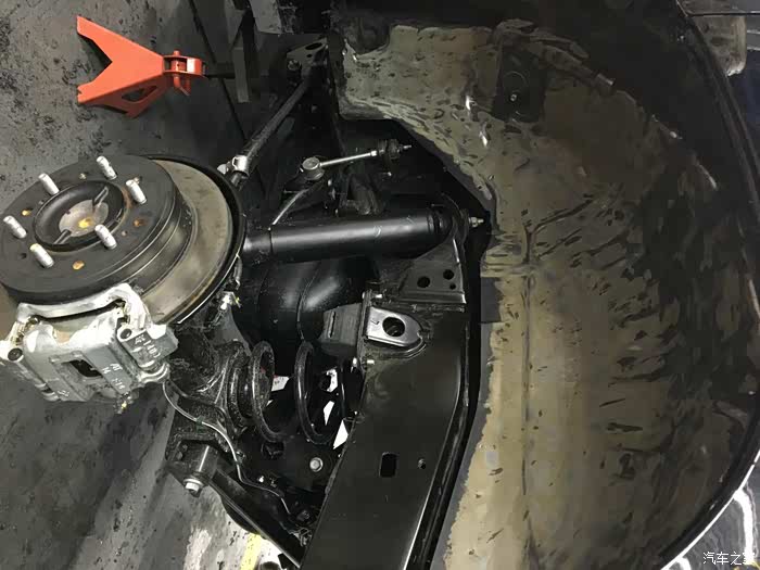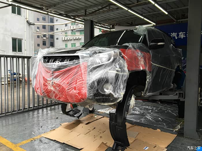 从这里介绍起吧,贴好防爆膜和换了无水冷却液后,直接做底盘防锈。图片里师傅们把轮罩等底盘件全部拆掉。强烈建议大家更换无水冷却液,这样发动机水路完全隔绝了空气,没有水疚。