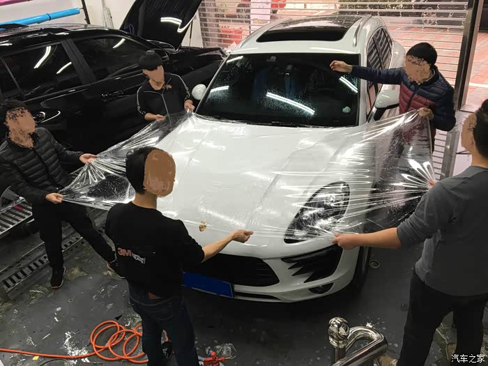 在我车施工期间,一台保时捷MACAN过来换隐形车衣,车主说这车晚上被一个醉酒汉用刀在引擎盖上画了一刀,而且好几台车都遭殃。过来检查的时候,膜烂掉了,油漆一点没伤着,牛X
