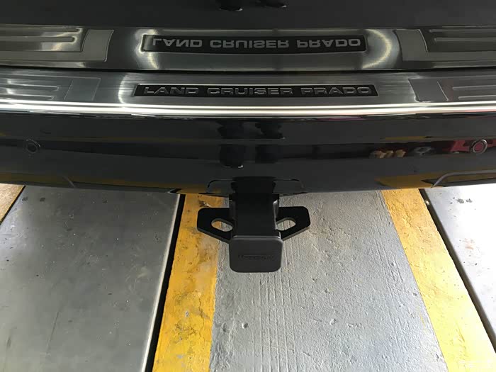 拖车钩接口开始施工了。大家看看,中规的普拉多,原配备胎在底下,可以看到有两个“牙齿”把备胎按住。