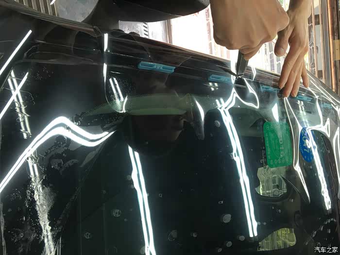 所以,“小黑”在正式服役前,除了隐形车衣,必不可少的还有玻璃盾。这图是在准备贴玻璃盾之前,先把前挡两边的胶条去掉。