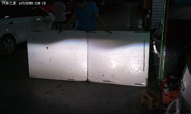f、调光,只能说这家改灯店调光设备实在简陋,一块白板进行调,算了,这个店长倒是训练有素的,近光上下不齐,调节了一下。