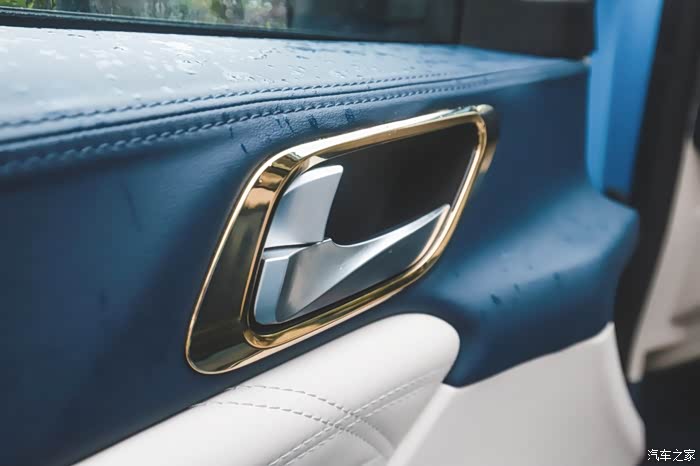 然后是内饰,虽然看上去比较简约,但是用材还是很厚道的,大部分都用了软质材质,像空调出风口以及内扣手部位都用了金色装饰,提升了整车的档次感。