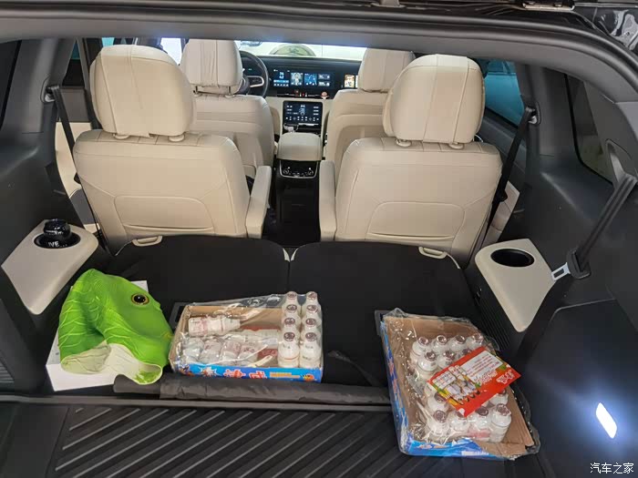 刚刚也说了,二排的大空间是在牺牲第三排位置的情况下,放倒第三排后备箱空间表现还算可以,如果使用第三排的话,后备箱空间就非常有限了。忽略楼主是一个爱喝津威的人。