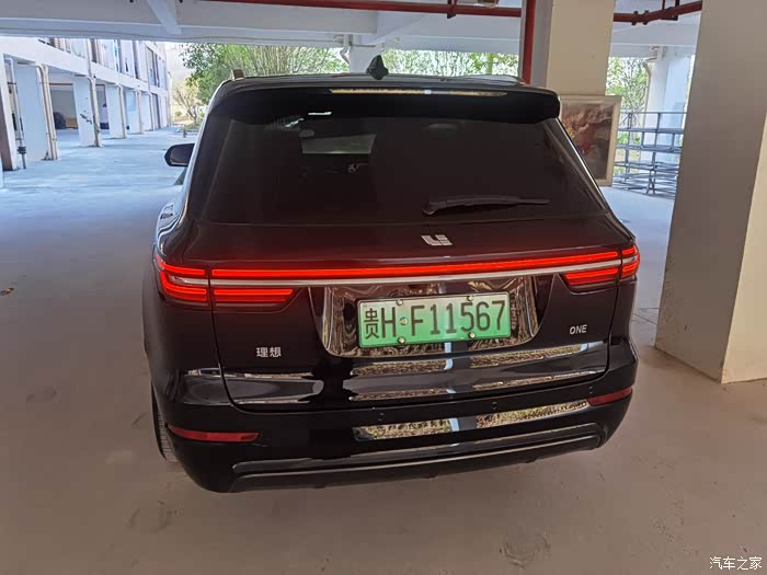 这也是贯穿式的尾灯,估计也是受现在造车的流行吧,很多路上跑的车,都用了贯穿式车灯的风格,就是后转弯灯有点小颗,然后就是汽车的标识,左边理想,右边one