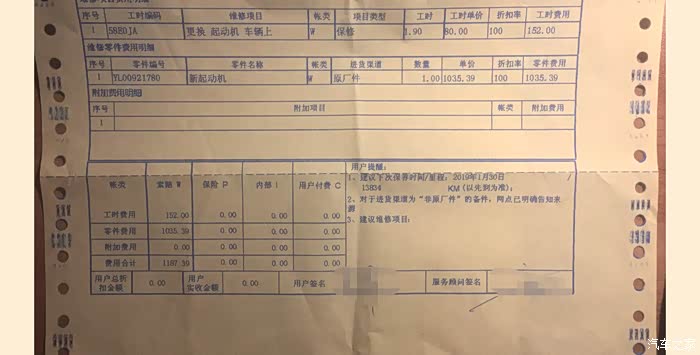 过程: 去4S 检查告知启动马达故障, 需更换 ,