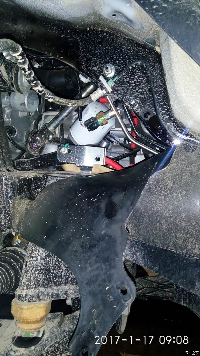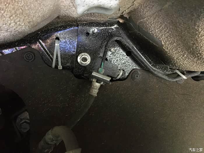 这个红色位置就是车身中间位置大梁里侧的另外一个也需要固定的共振点,务必掌握一个原则,就是决对不能让管路与管路,管路跟车身接触,避免蹭漏油管,后果你懂的,当你处理好这两个位置,世界都安静了