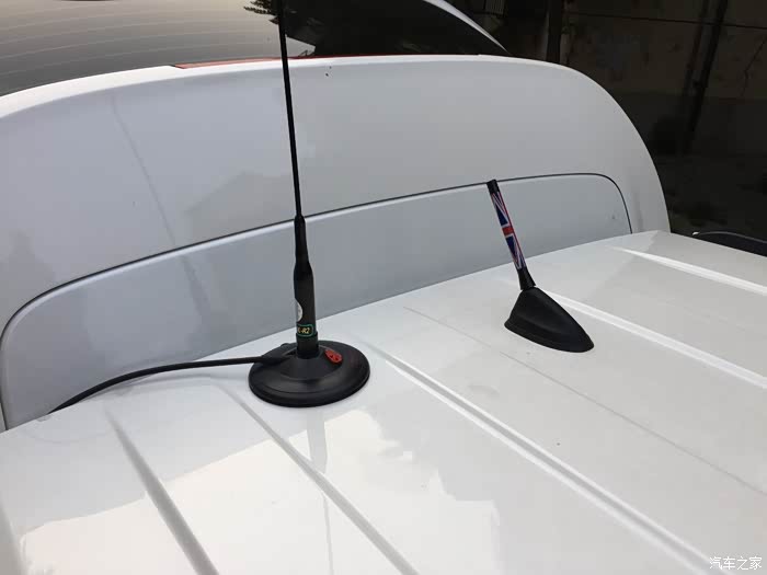 两个天线,收音机的是看着好玩就买了,电台的天线我的安装位置不理想,馈线是5米得,短了,最好是6或者是7米,把天线放在车顶中间位置,车顶就被当作天馈系统的地网,和天线共同构成车载电台的天线系统。再一个原因就撼路者的胎压监测控制系统就在车顶尾部,频率为433.XXX,如果设置频点及天线位置接近,会影响胎压监测系统正常工作