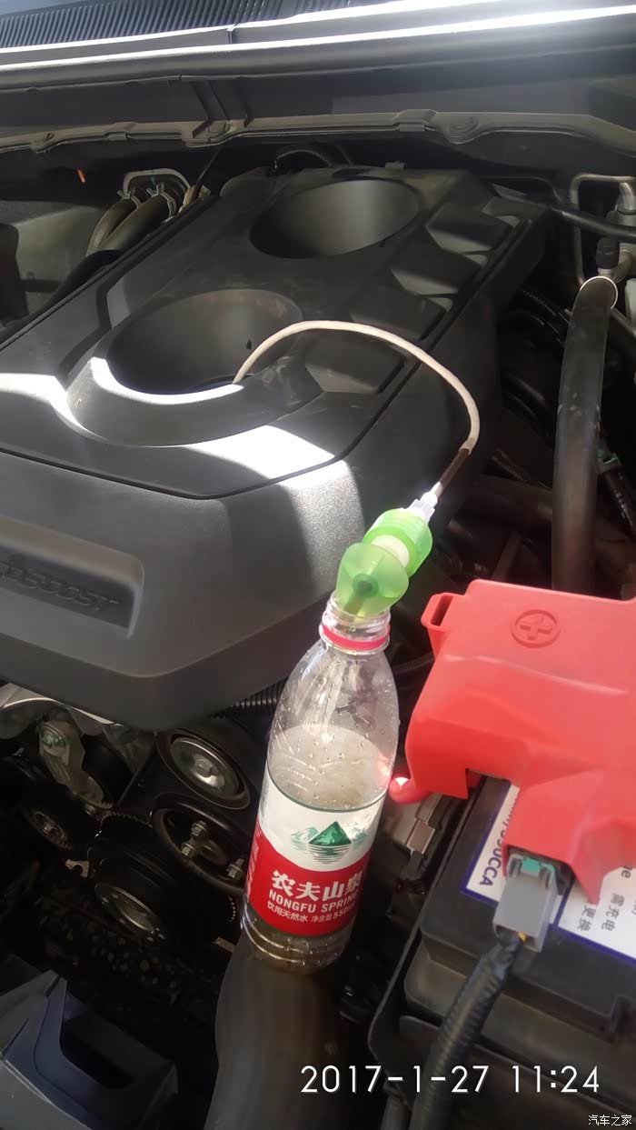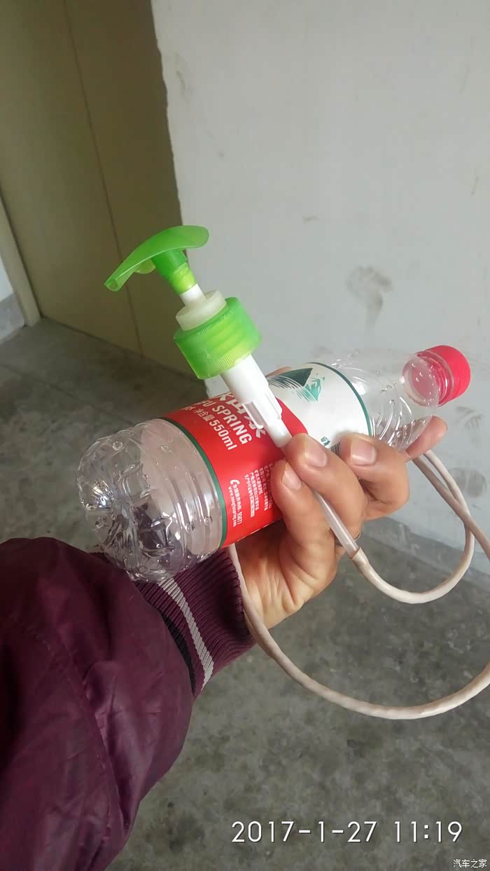 颤抖吧同志们!估计能看懂的都跟我都有一拼哈!没错,机油加多了。首保回来,检测机油位置,拔出来吓一跳,多了,怎能容忍,强迫症的老毛病立马犯了,去店里也放油,懒得再跑了,自己想辙,农夫山泉空瓶+拆了个洗手液空瓶+抽油管是。。。。。。没错,网线皮