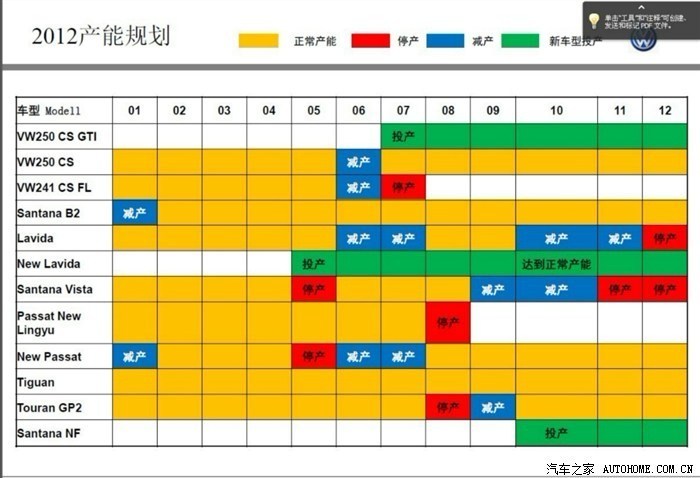 2012年新帕萨特、新领驭生产计划 (新领驭8月份正式退市停产)