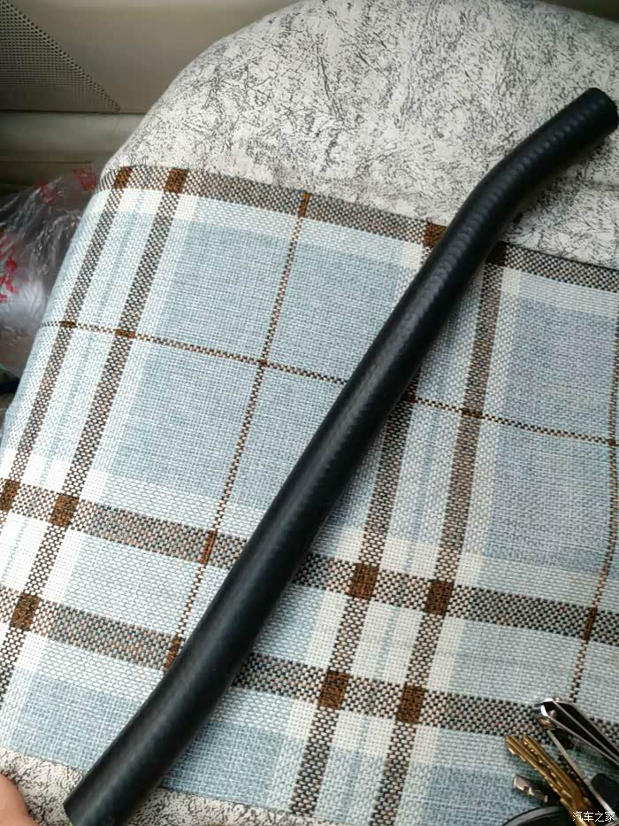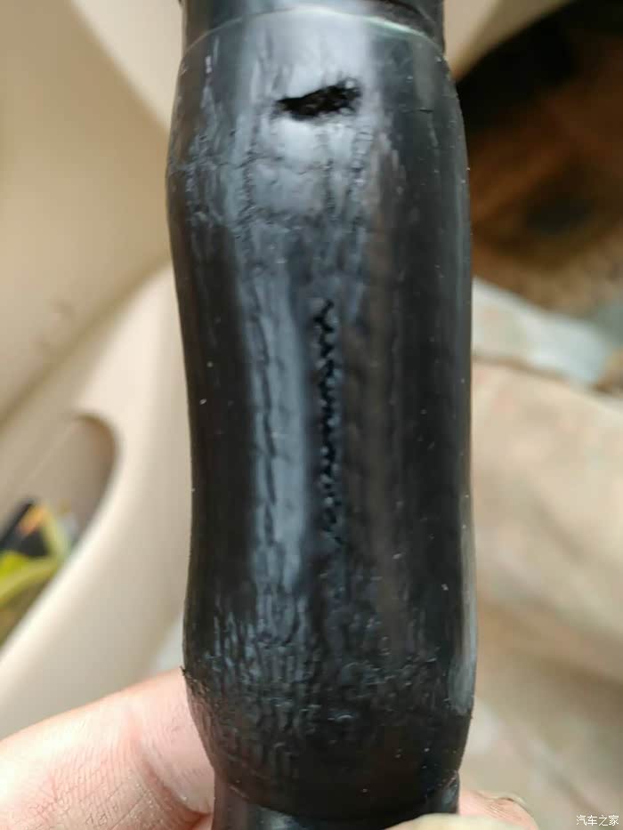 这是拆下来的胶管,一道裂纹!一看就是老化了,经不起压力了!上面的口子是我用钳子夹的,请无视!