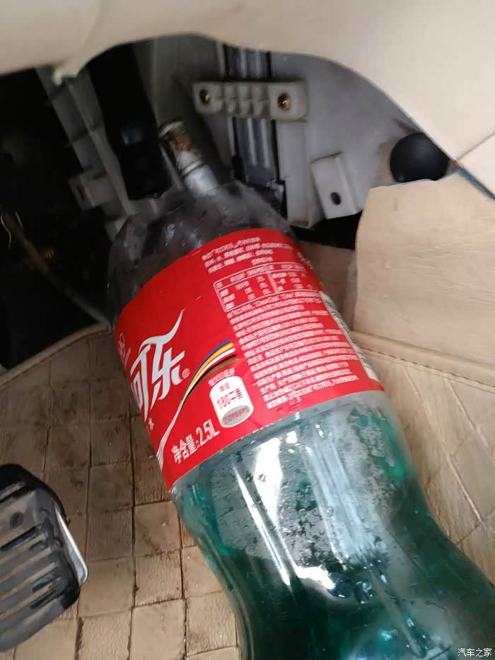 要拆胶管,肯定会有防冻液流出,先剪个瓶子准备接防冻液。后来感觉,绝对是明智的选择!