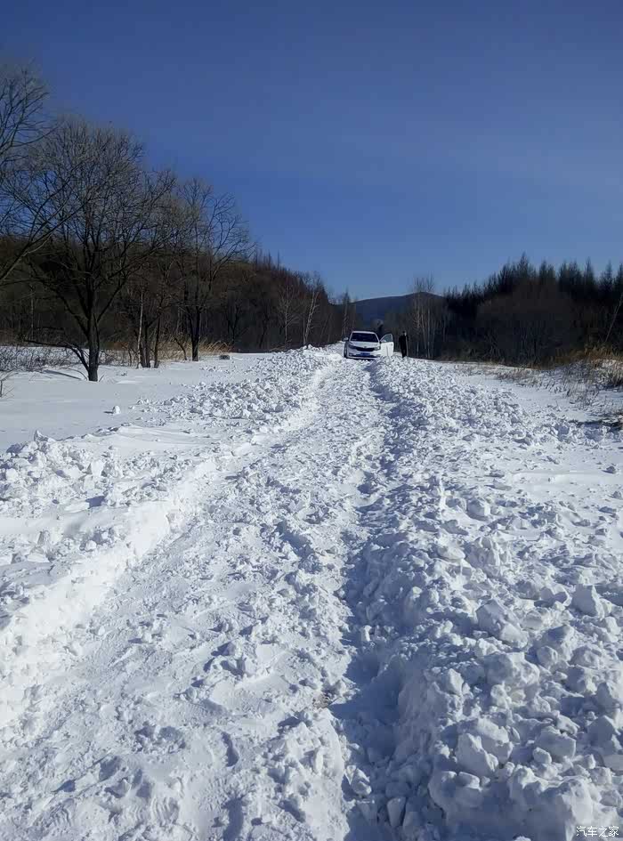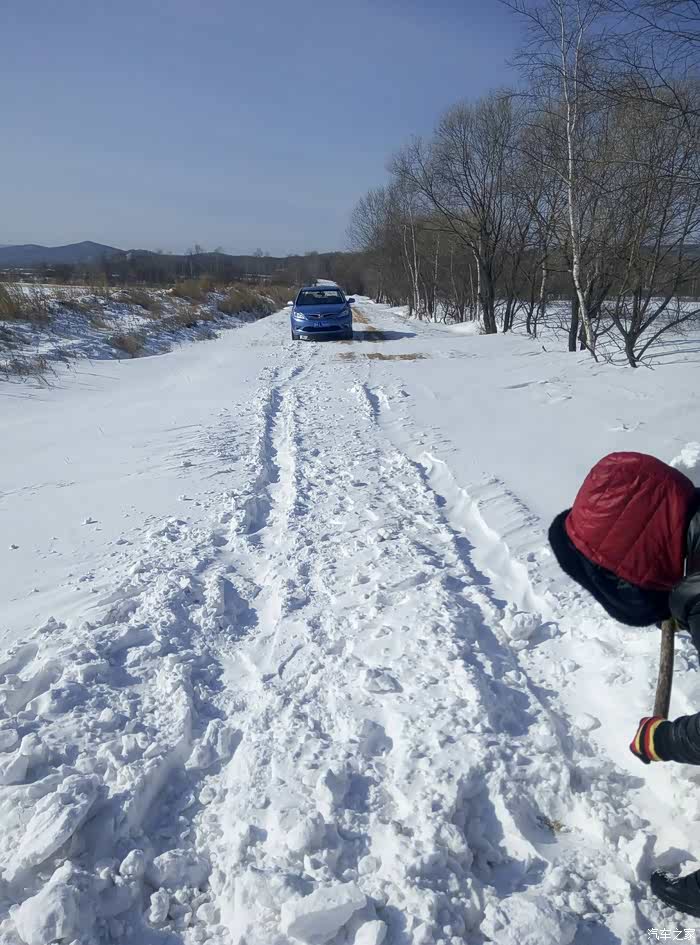 雪被大风吹上路了 车都过不去了 用锹戳