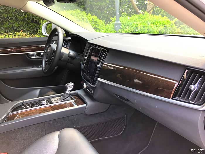 S90的真皮原木内饰是熟悉的沃尔沃作风,环保、真材实料,