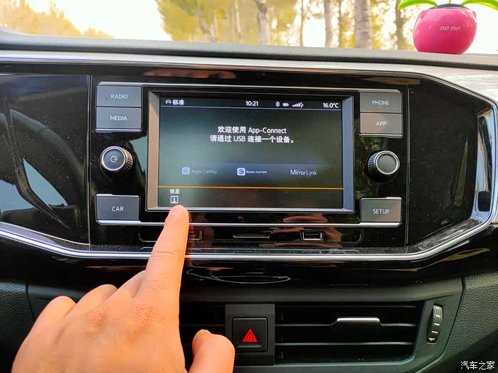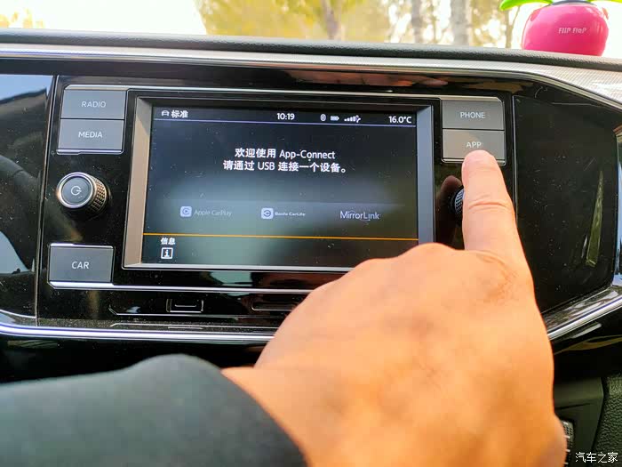 19款探岳330TSI四驱版中控屏,找到APP盲选按键。