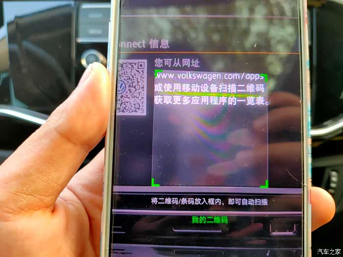 首先点击屏幕左下方的“信息”说明,然后系统会弹出一个二维码,提示车主下载软件