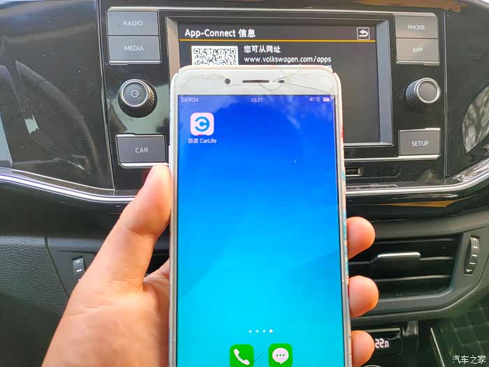 接下来,我们就可以把手机扔到一旁,在中控屏上操作,点击Baidu CarLife