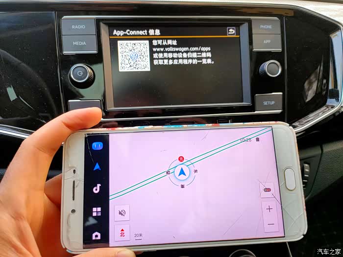 这时,刚才手机上的地图就会投到中控屏上,哇!好神奇~