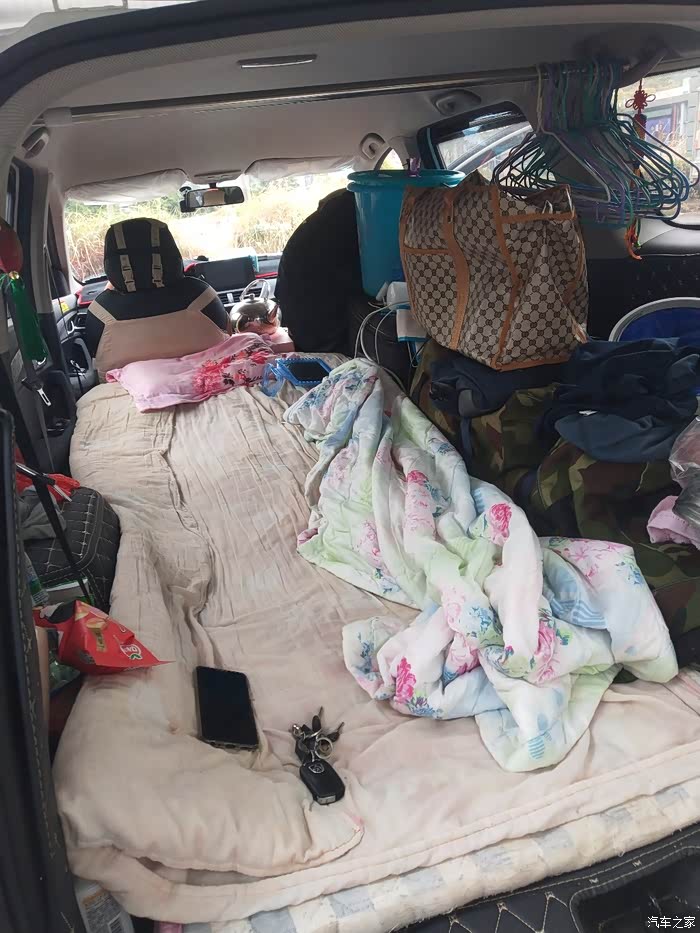 东西放满了,要睡两个人也可以,就是得把东西全部挪到驾驶室,要不然就装个行李架