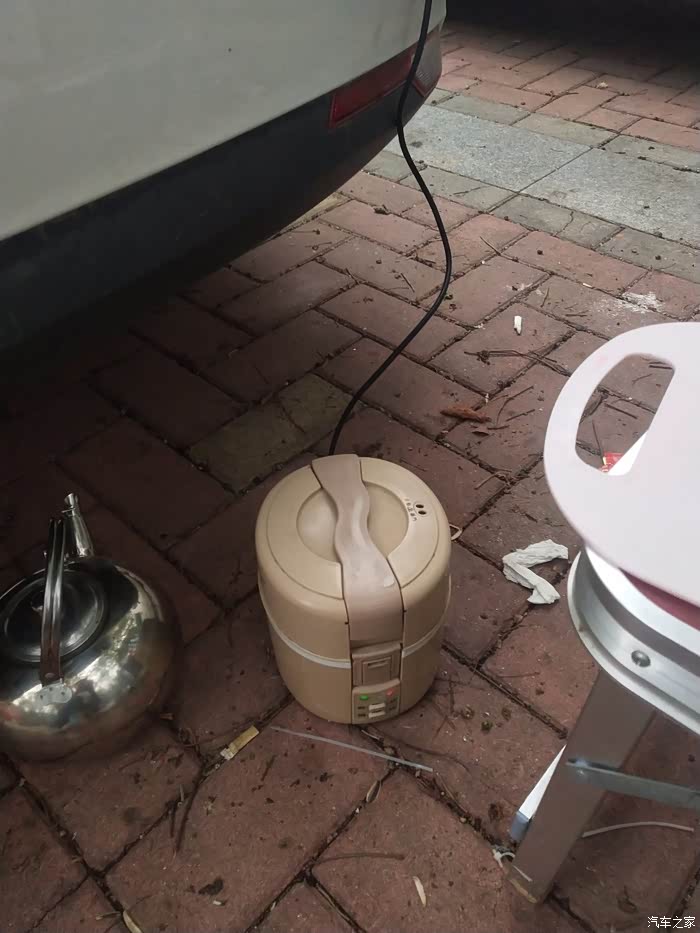 外面下雨,坐在后尾箱