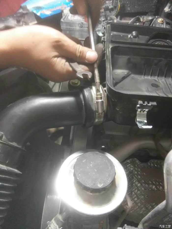 最好也把进气管胶管取下 就是一把一字螺丝刀就可以搞定。