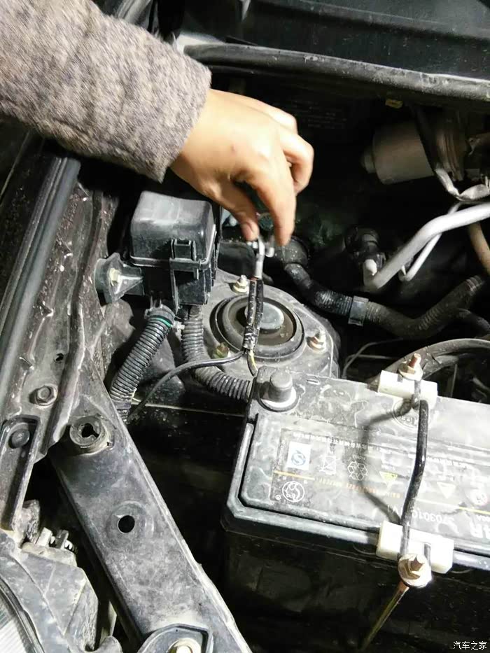 好!现在我们就进入主题,按照要求先把电瓶负极断开(注:一般为黑线)安装所需工具就是一把螺丝刀,一把8-10的扳手就可搞定。