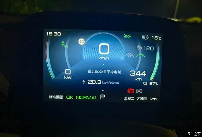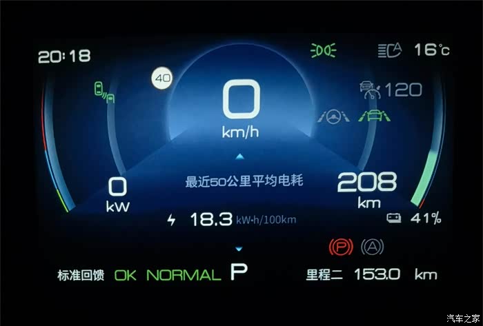 仪表显示最近高速行驶50KM的电耗是20.3度/百公里