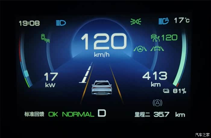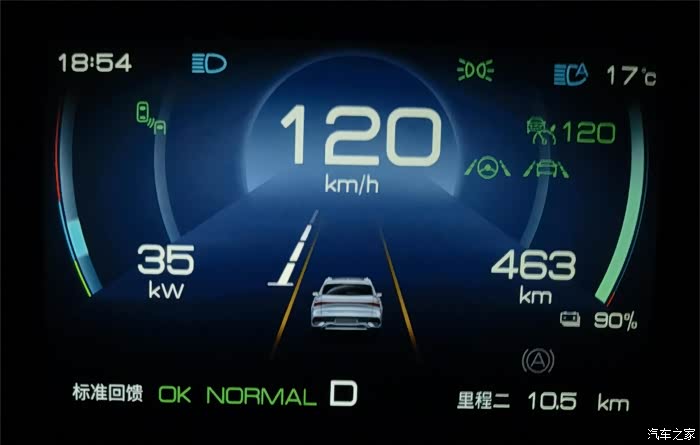 上高速后,只要不是隧道,全部自适应巡航120KM/小时,晚上高速车辆比较少,速度保持的很不错!