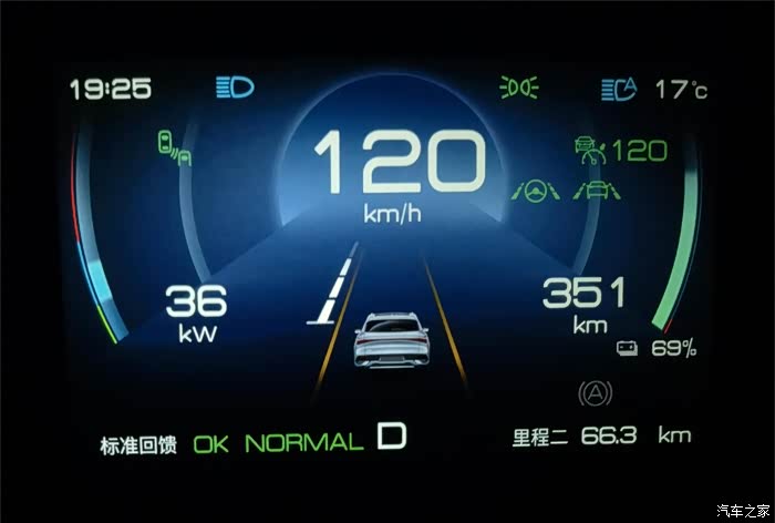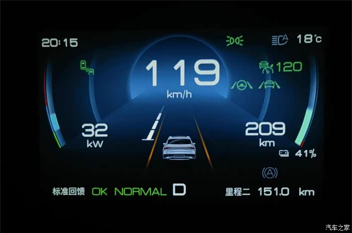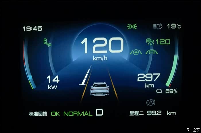 实际高速120KM/小时的速度之下,续航消耗和实际行驶里程的比例几乎是2:1,速度120KM/小时就是5折的高速折扣率吧!电耗几乎稳定在20度/百公里左右!