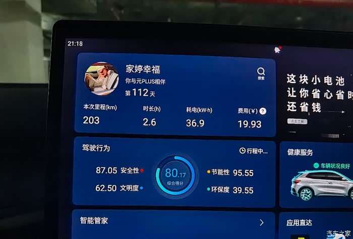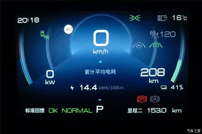 看着大屏上面的数据,计算一下平均电耗:29.8/153=0.195,那么算出来的平均电耗就是19.5度/百公里