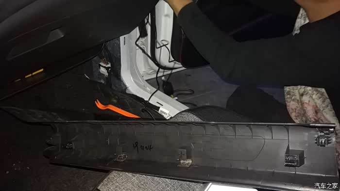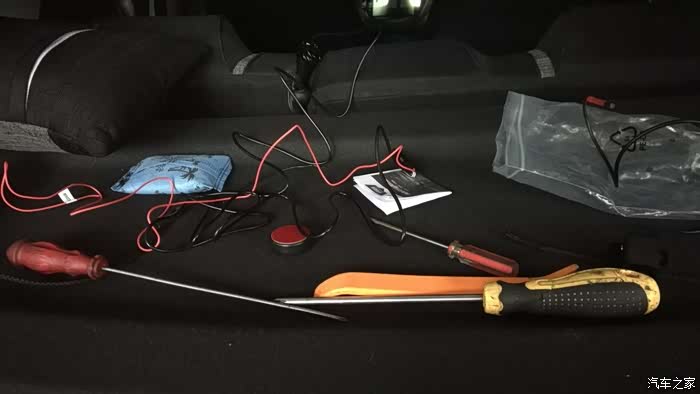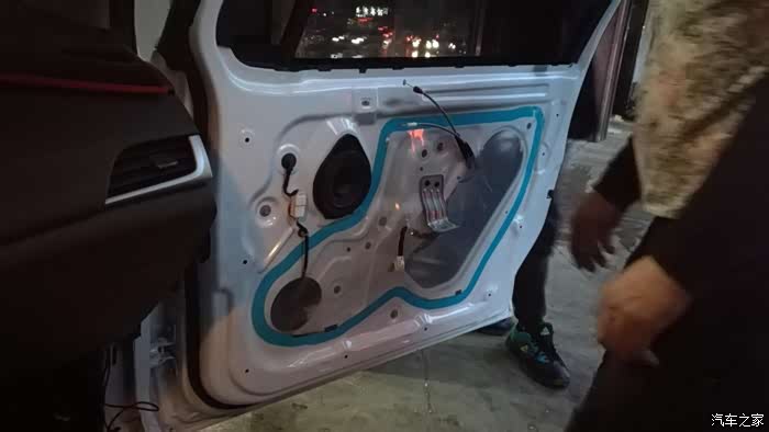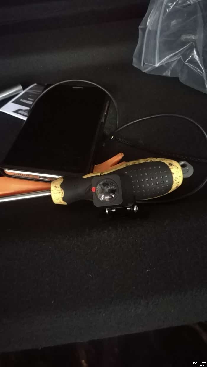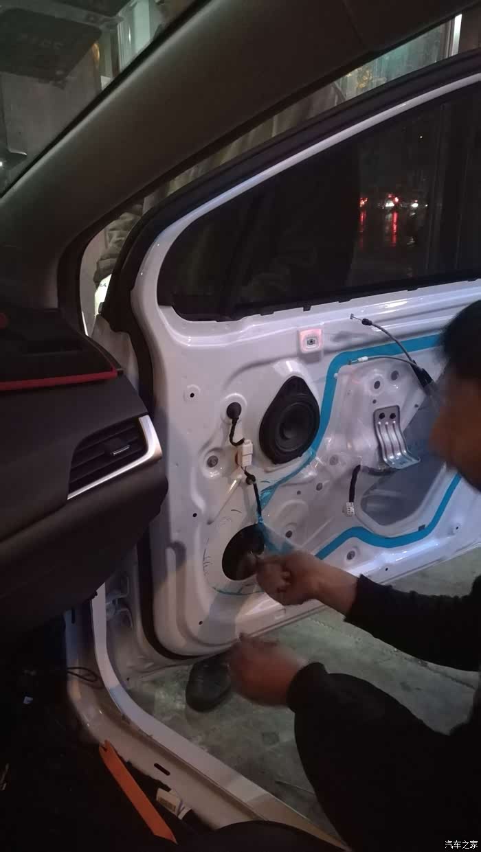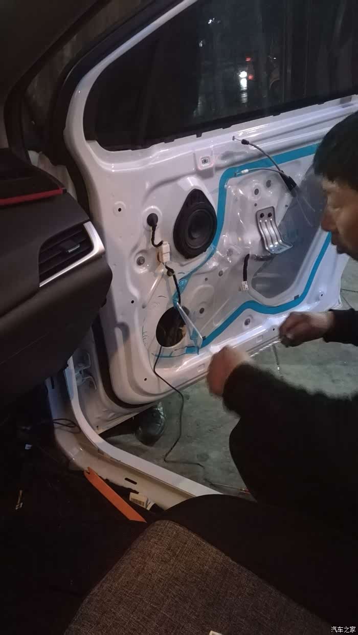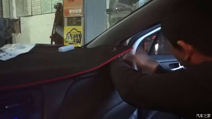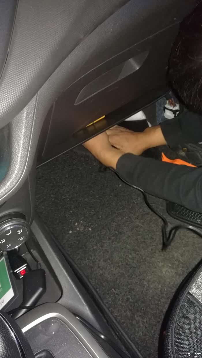 本来说明上说的可以直接粘到后视镜下面,从车门上面引出去,可二位师傅敬业啊,将线从车门中走。