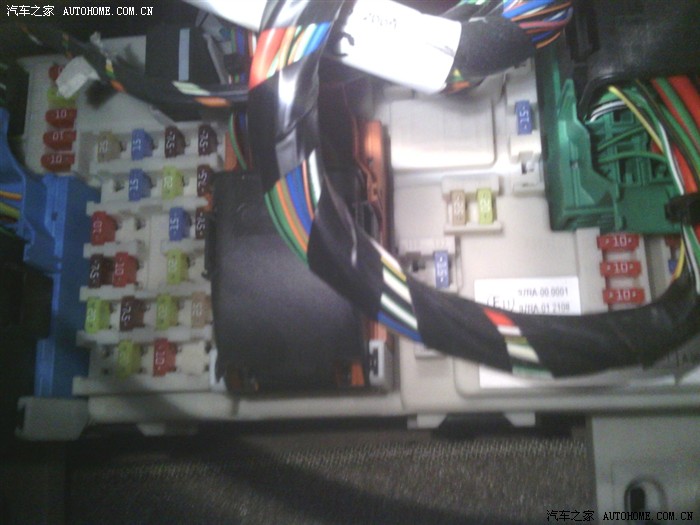 首先看说明书,知道点烟器保险丝在副驾驶座的手套箱附近,打开手套箱看了半天也不知道在哪里,后来想想应该在手套箱下,于是打着手电转到副驾驶座的仪表板下,终于找到。