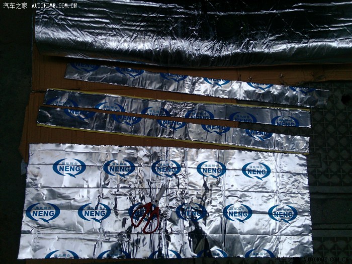 裁剪止震垫,,我是做条状行分布,,为什么不用全覆盖?主要是条状作业节约材料,而且可以抑制共振。。论坛很多是全覆盖作业的吧,我真心伤不起。。多出一张就要超出我的预算了,,屌丝能省则省,在不影响隔音质量的前提下,用量少也能减轻重量节约油耗。。
