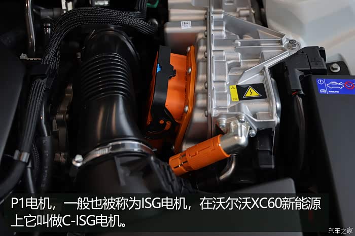P1电机,一般也被称为ISG电机,在沃尔沃XC60新能源上它叫做C-ISG电机。它位于发动机和变速箱之间,离合器之前,代替传统飞轮的位置和发动机共用同一个曲轴集成在发动机上。因为和发动机刚性连接,所以传输效率比较高,不仅可以辅助发动机启动,还可以给发动机提供动力辅助,提高动力扭矩,增加驾驶操控感,还可以实现更高的动能回收。