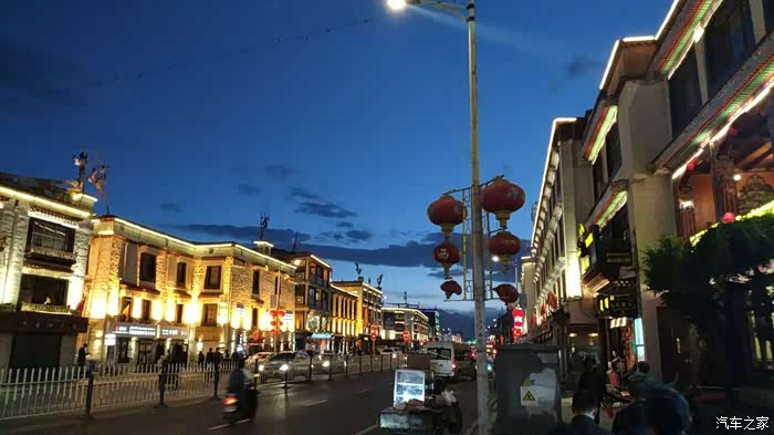 抵达拉萨是下午4点左右,稍作休息后可以逛一下八廓街外面的街道,买点牦牛肉干,牦牛酸奶,珠子之类的特产,这个图片是晚上9点拍的,拉萨大概在9点才刚刚黑天