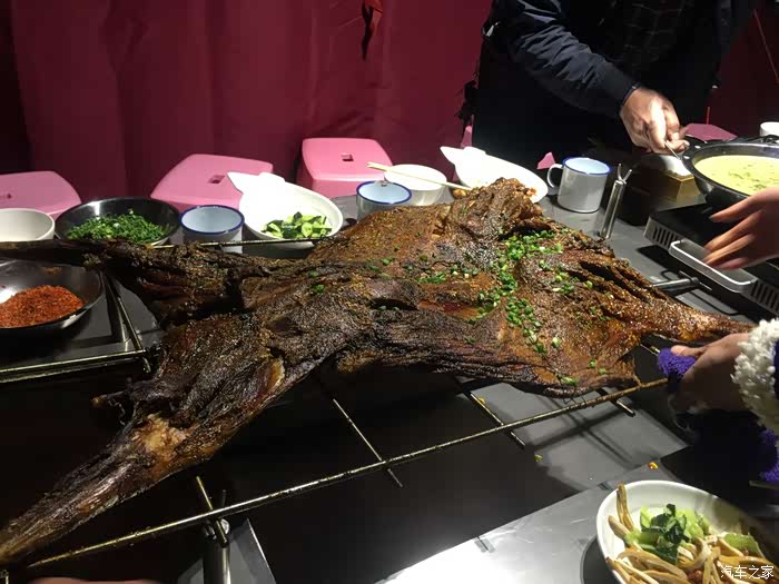还有个烤鸡,更好吃,400元,老板送的酒,还做了几个猪血 羊血汤,大伙畅所欲言,友谊又深了几分。
