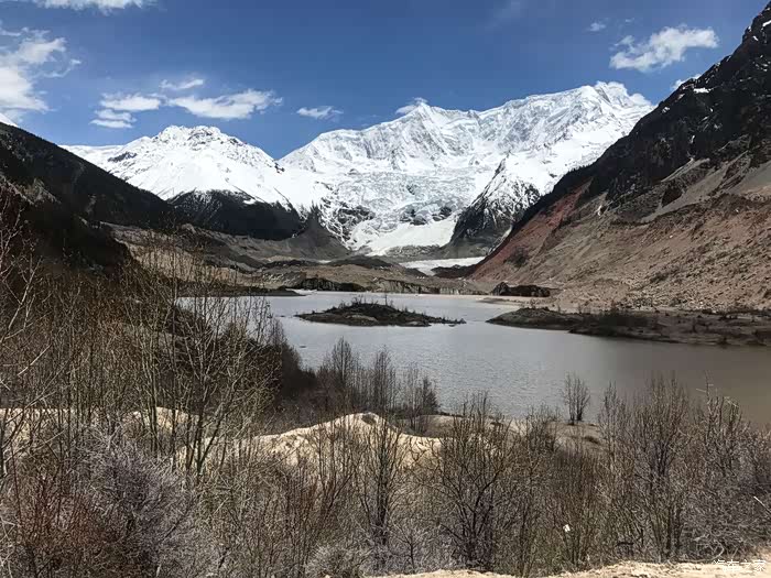 米堆冰川主峰海拔6385米,冰川湖面海拔仅3800米。